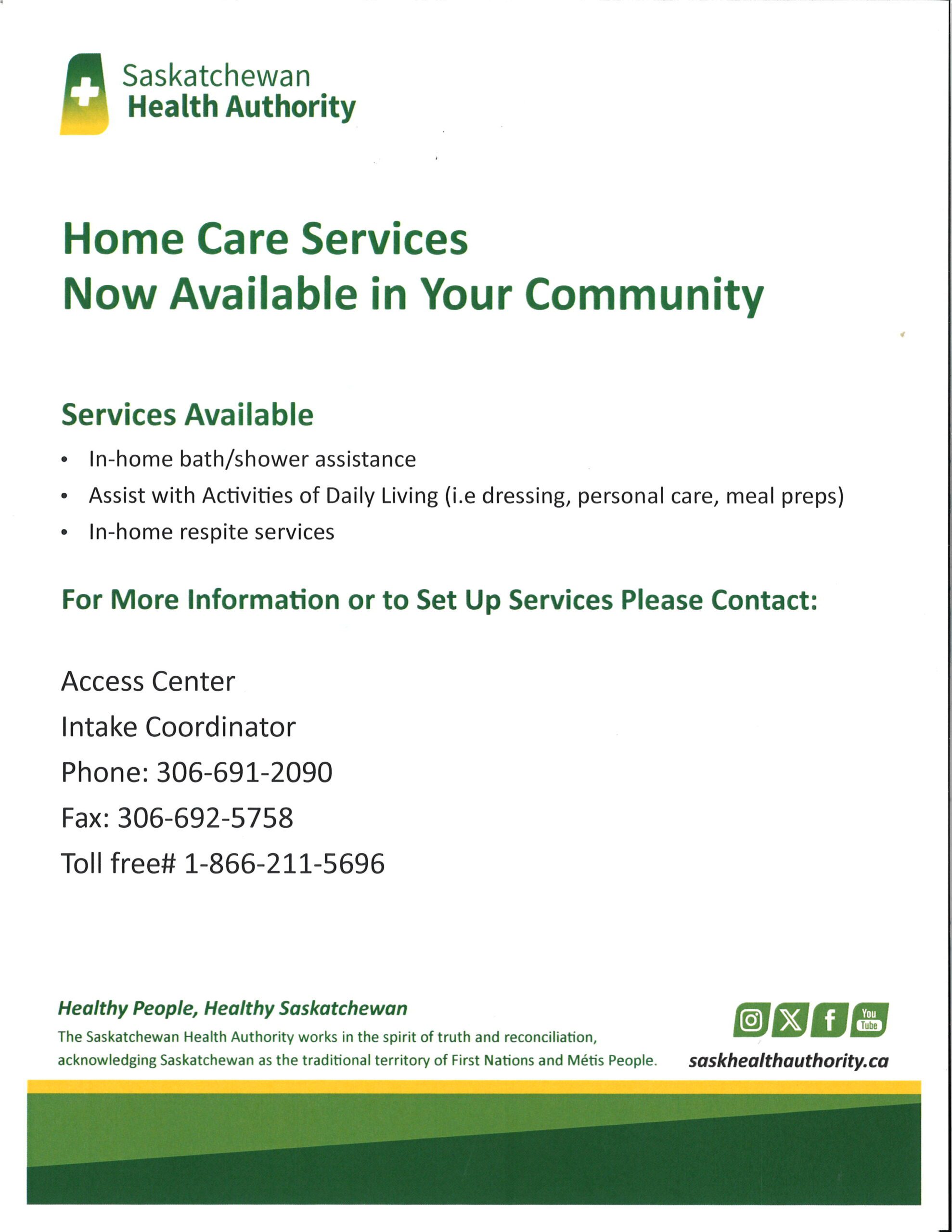 HOME CARE SERVICES NOW AVAILABLE